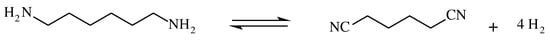 Acceptorless dehydrogenation of amines to nitriles. Example of hexan-1,6-diamine [71].