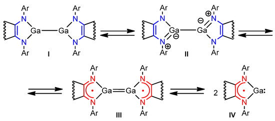 - Fedushkin, I.L.; Dodonov, V.A.; Skatova, A.A.; Sokolov, V.G.; Piskunov, A.V.; Fukin, G.K. Redox-Active Ligand-Assisted Two-Electron Oxidative Addition to Gallium(II). Chem. Eur. J. 2018, 24, 1877–1889. [Google Scholar] [CrossRef]