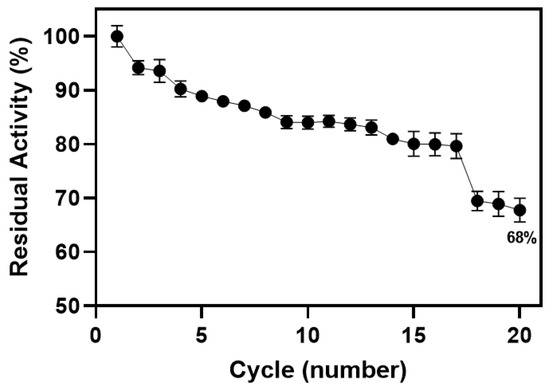 Reusability of the CMC-immobilized crude enzymatic extract after 20 cycles.