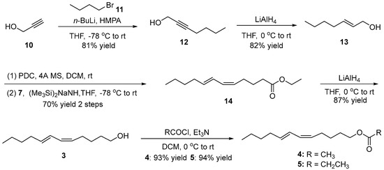 3.2. Synthesis of Sex Pheromones 3, 4 and 5