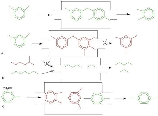 - Csicsery, S.M. Shape-selective catalysis in zeolites. Zeolites 1984, 4, 202–213. [Google Scholar] [CrossRef]