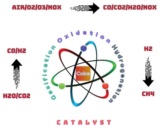 - Menon, P.G. Coke on catalysts-harmful, harmless, invisible and beneficial types. J. Mol. Catal. 1990, 59, 207–220. [Google Scholar] [CrossRef]