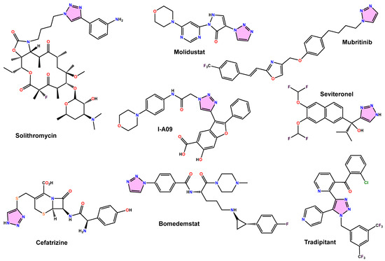 - Todorov, L.; Kostova, I. 1,2,3-Triazoles and their metal chelates with antimicrobial activity. Front. Chem. 2023, 11, 1247805. [Google Scholar] [CrossRef]