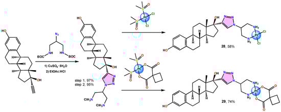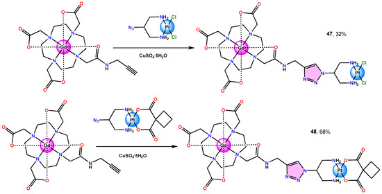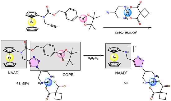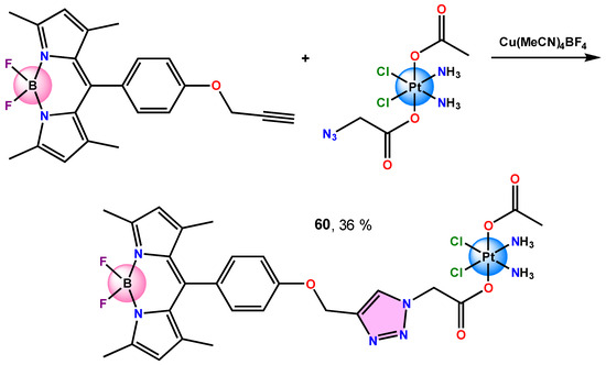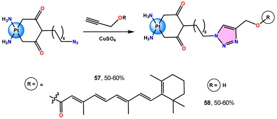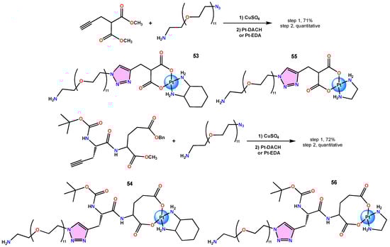 - Gabano, E.; Ravera, M.; Tinello, S.; Osella, D. Synthesis of PtIV-biomolecule conjugates through Click chemistry. Eur. J. Inorg. Chem. 2015, 2015, 5335–5341. [Google Scholar] [CrossRef]