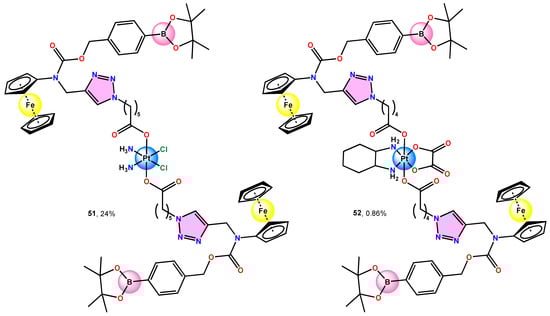 Hernández-Romero D, Rosete-Luna S, Méndez-Bolaina E, Herrera-Cogco EdlC, Amador-Gómez LP, Soto-Contreras A, Rivera-Villanueva JM, Colorado-Peralta R. Importance of the CuAAC Reaction in the Synthesis of Platinum Complexes with 1,4-Disubstituted-1H-1,2,3-triazoles: A Review of Their Anticancer Activity. Reactions. 2024; 5(4):947-983. https://doi.org/10.3390/reactions5040050