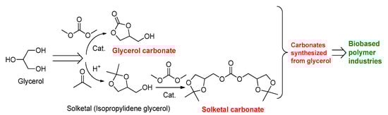 - Kenar, J.A.; Knothe, G. 1,2-Isopropylidene glycerol carbonate: Preparation, characterization, and hydrolysis. J. Am. Oil. Chem. Soc. 2008, 85, 365–372. [Google Scholar] [CrossRef]