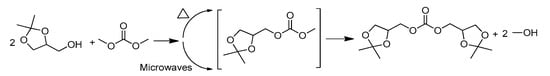 In the above context, solketal carbonate was synthesized via microwave-assisted reaction of solketal with dimethyl carbonate under catalyst- and solvent-free reaction conditions. The method presented in this contribution is green and less harmful to the environment compared to the previously described conventional alkali-catalyzed method.