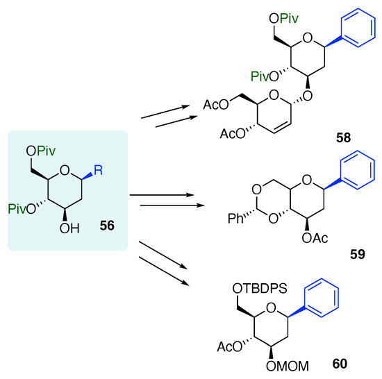 Derivatization of 2-deoxy-β-C-aryl glycosides 56.