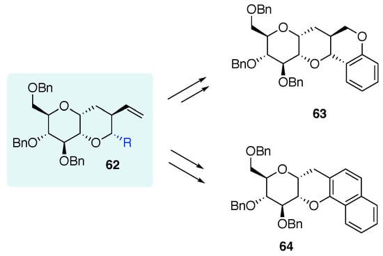 Synthesis of 1,2-annulated sugars having substituted tetrahydropyrans 62.