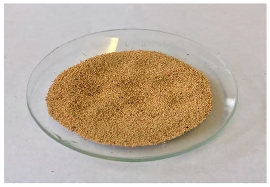 The heterogeneous polybenzimidazole-supported Mo(VI) (PBI.Mo) catalyst was characterised to determine their molecular structure and morphological and physicochemical properties. The characterisation of the molecular structure included a Fourier transform infrared (FTIR) analysis. The morphological analysis of the catalyst was carried out using a scanning electron microscope (SEM). Brunauer–Emmett–Teller (BET) surface area, pore volume, and pore diameter were determined the by nitrogen adsorption and desorption method using a Micromeritics Gemini VII. The particle size measurement was performed with a Malvern Mastersizer. An image of the prepared catalyst is shown in Figure 2.