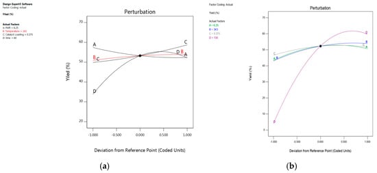 The perturbation plot represents the effect of each variable on the reaction response: (a) 1,2-epoxy-5-hexene, (b) 1,2-epo xy-7-octene.