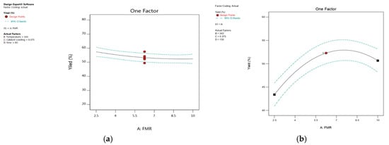 To fit the experimental response with the independent variables, a model equation was developed [45]. The mathematical model was defined using the general quadratic model as shown in Equation (1).