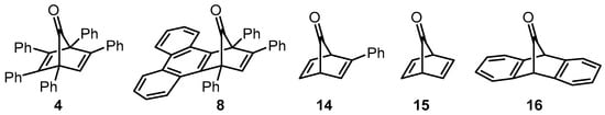 - Yankelevich, S.; Fuchs, B. On Alleged Norbornadien-7-ones. Tetrahedron Lett. 1967, 49, 4945–4949. [Google Scholar] [CrossRef]