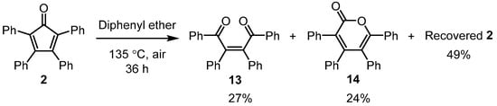 Air oxidation of tetracyclone (2) to form ketone 13 and α-pyrone 14 [27].