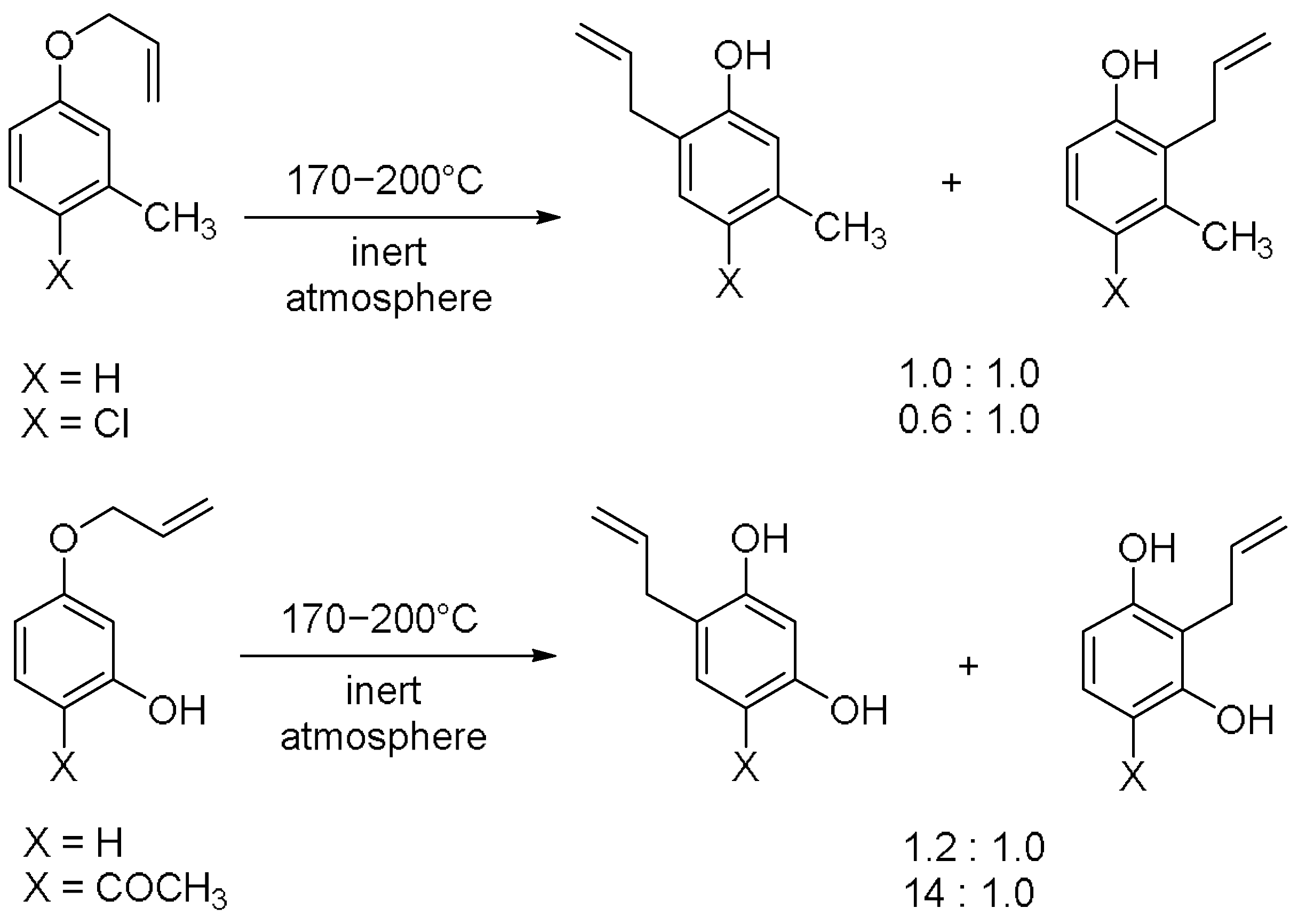 - White, W.N.; Gwynn, D.; Schlitt, R.; Girard, C.; Fife, W. The Ortho-Claisen Rearrangement. I. The Effect of Substituents on the Rearrangement of Allyl p-X-Phenyl Ethers. J. Am. Chem. Soc. 1958, 80, 3271–3277. [Google Scholar] [CrossRef]