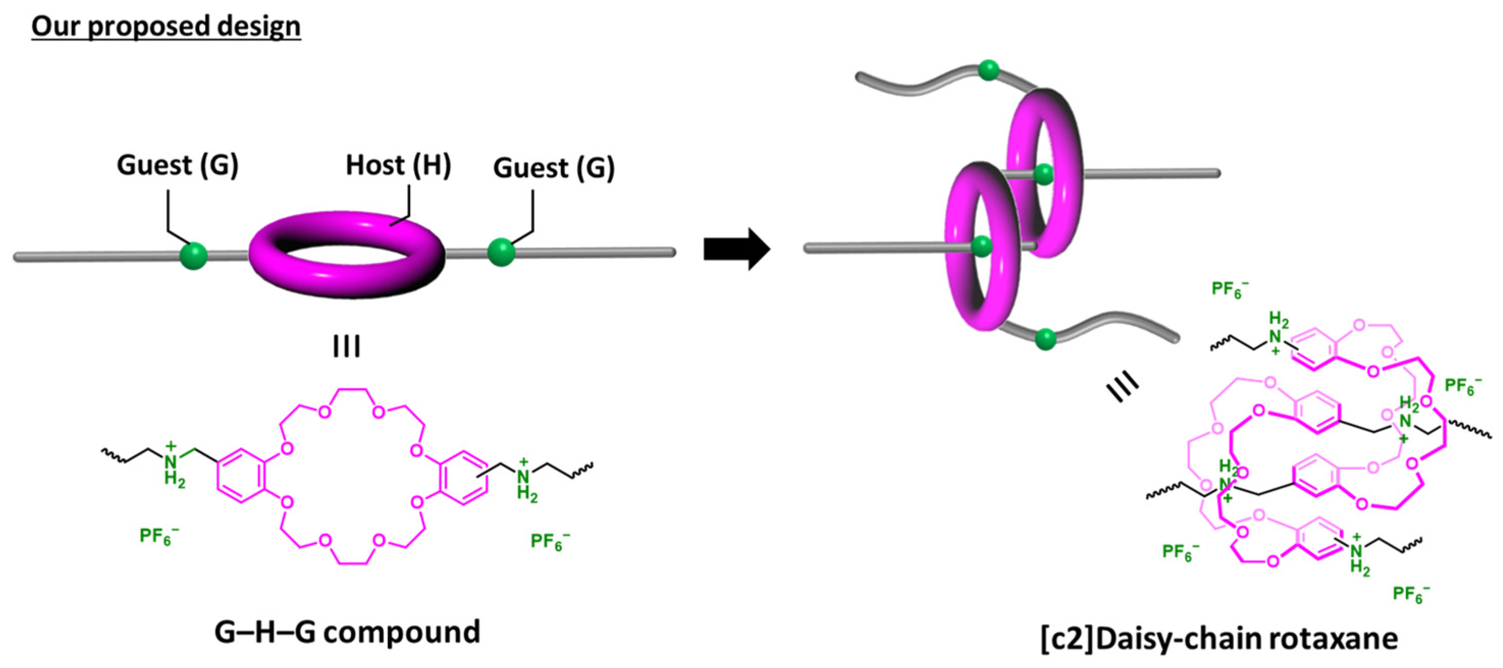 - Clark, P.G.; Day, M.W.; Grubbs, R.H. Switching and Extension of a [c2]Daisy-Chain Dimer Polymer. J. Am. Chem. Soc. 2009, 131, 13631–13633. [Google Scholar] [CrossRef]