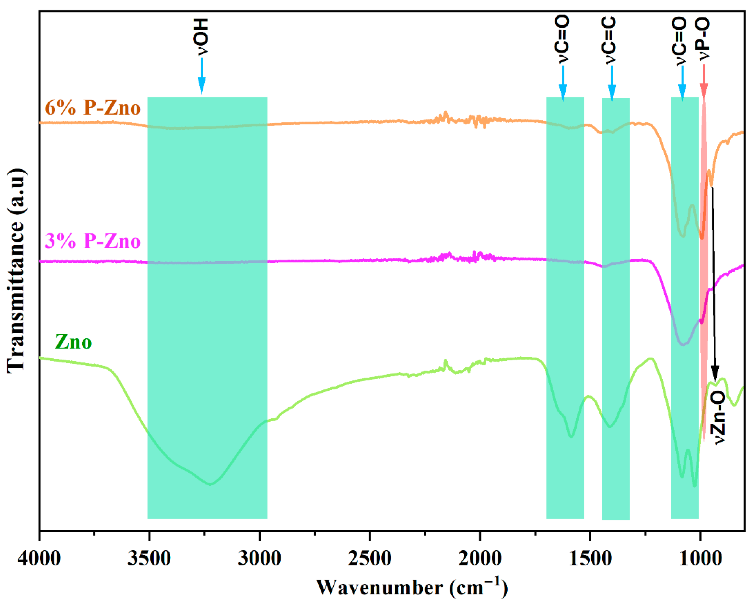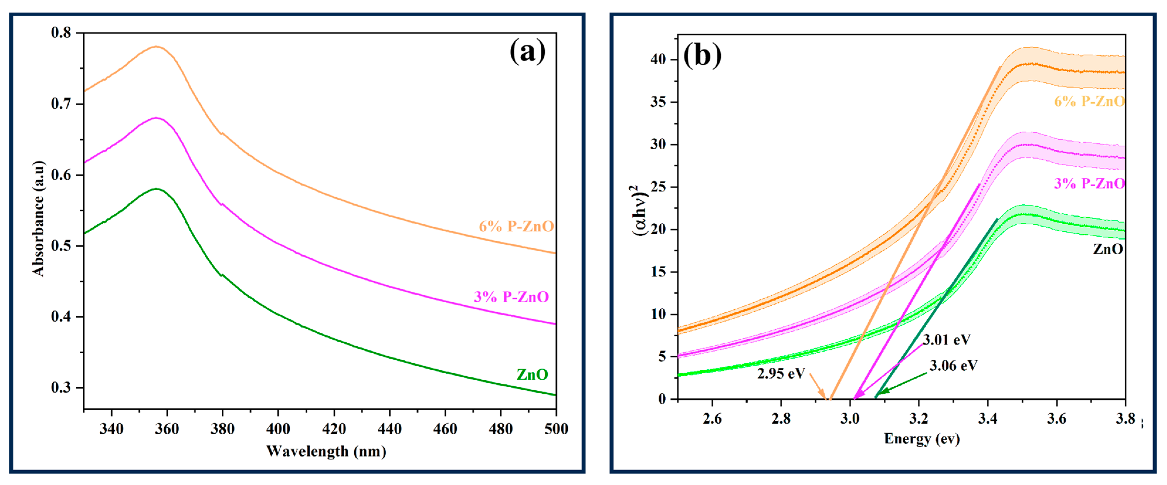 3.1. Optical Properties of Phosphate-Doped ZnO Nanoparticles