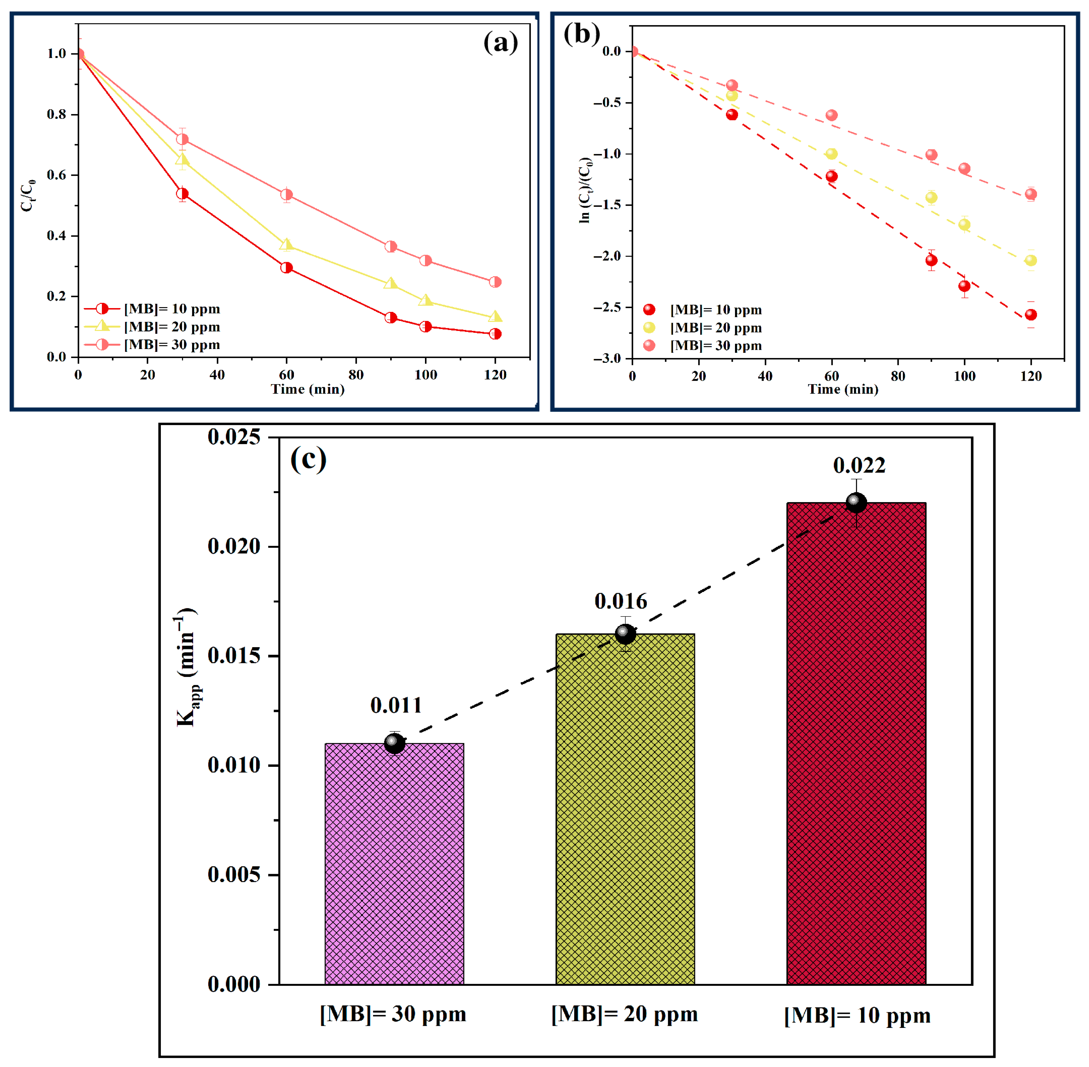 3.10. Effect of pH on the Photo-Fenton-like Degradation of MB
