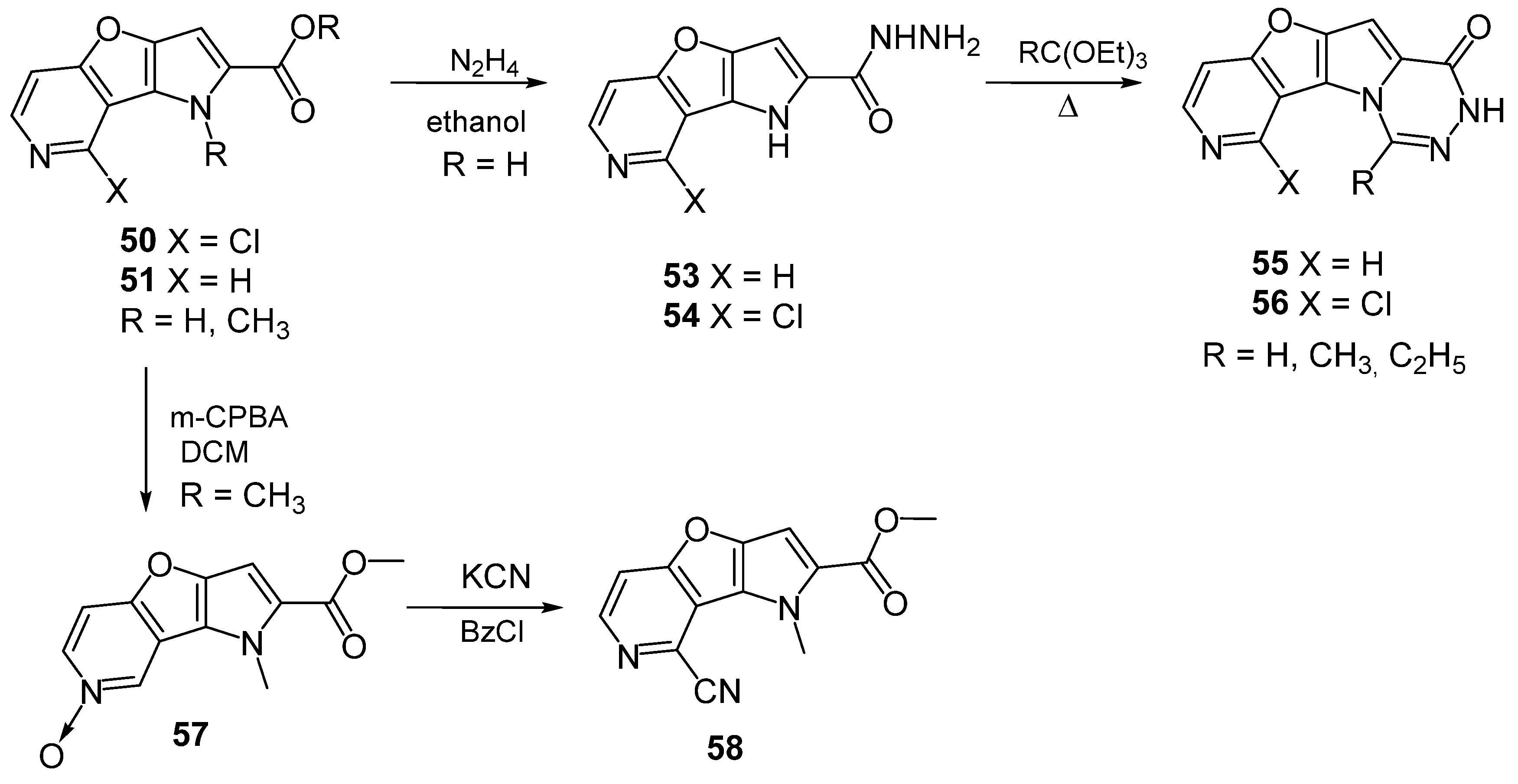 - Bencková, M.; Krutošíková, A.; Pullman, J.; Prónayová, N. Pyrrolo [2′,3′:4,5]furo [3,2-c]pyridine Derivatives Reactions in the Pyridine and Pyrrole Ring. Chem. Pap. 1999, 53, 118–122. [Google Scholar] [CrossRef]