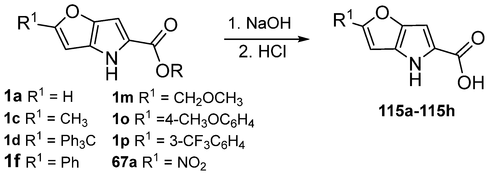 - Sivý, P.; Koreň, B.; Valach, F.; Krutošíková, A. Structure of a furo [3,2-b]pyrrole derivative. Acta Cryst. 1988, C44, 2032–2033. [Google Scholar] [CrossRef]
