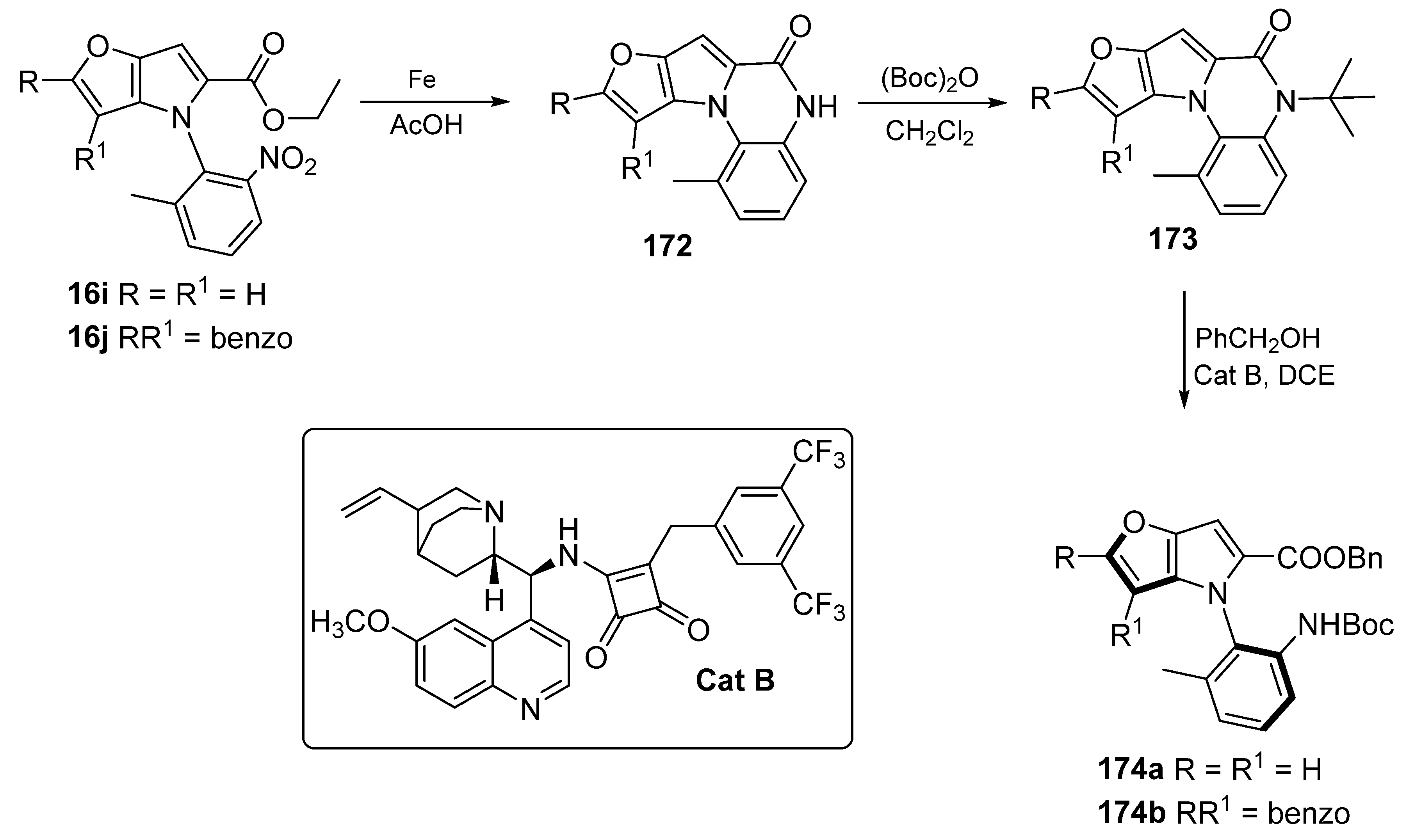 - Baykal, A.; Plietker, B. A Bu4N[Fe(CO)3(NO)]-Catalyzed Hemetsberger–Knittel Indole Synthesis. Eur. J. Org. Chem. 2019, 2020, 1145–1147. [Google Scholar] [CrossRef]