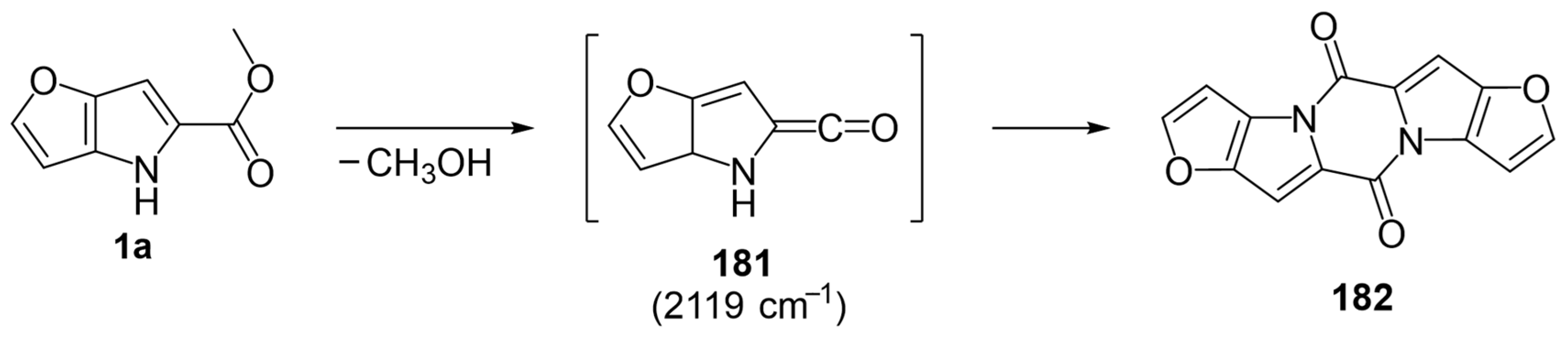 - Sleziak, R.; Balážiová, S.; Krutošíková, A. Reactions of furo [2,3-b]pyrrole and Furo [3,2-b]pyrrole-Type Aldehydes. Collect. Czechoslov. Chem. Commun. 1999, 64, 1135–1146. [Google Scholar] [CrossRef]