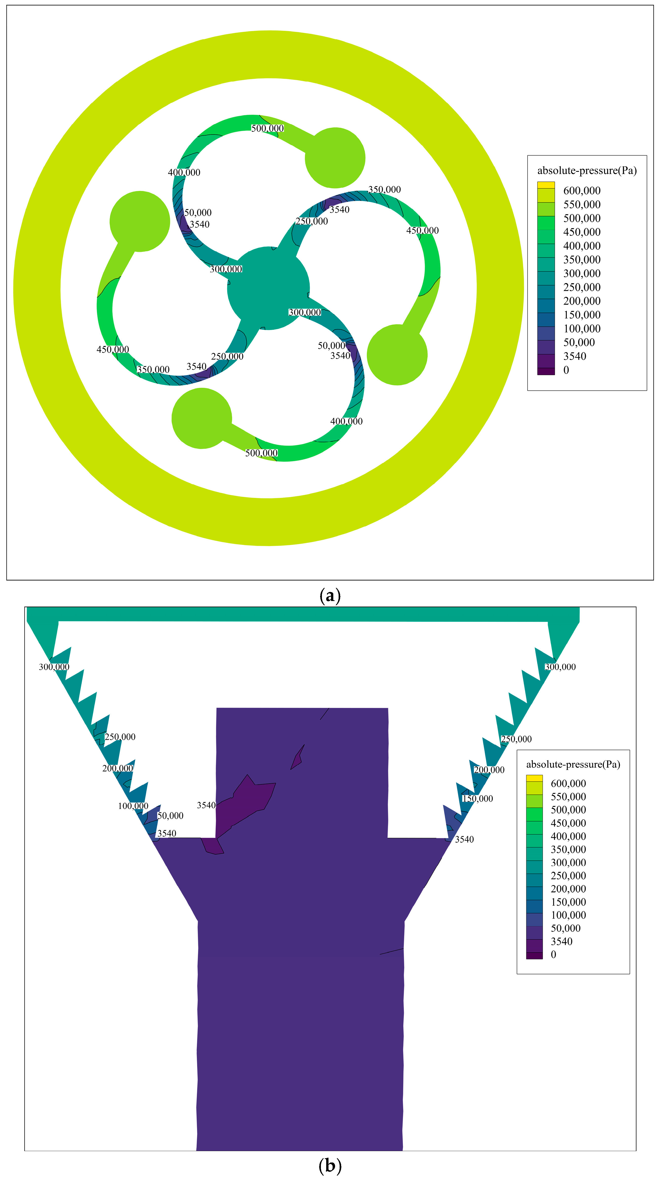 4.1.1. The Absolute Pressure of the Fluid Inside the Cavitator