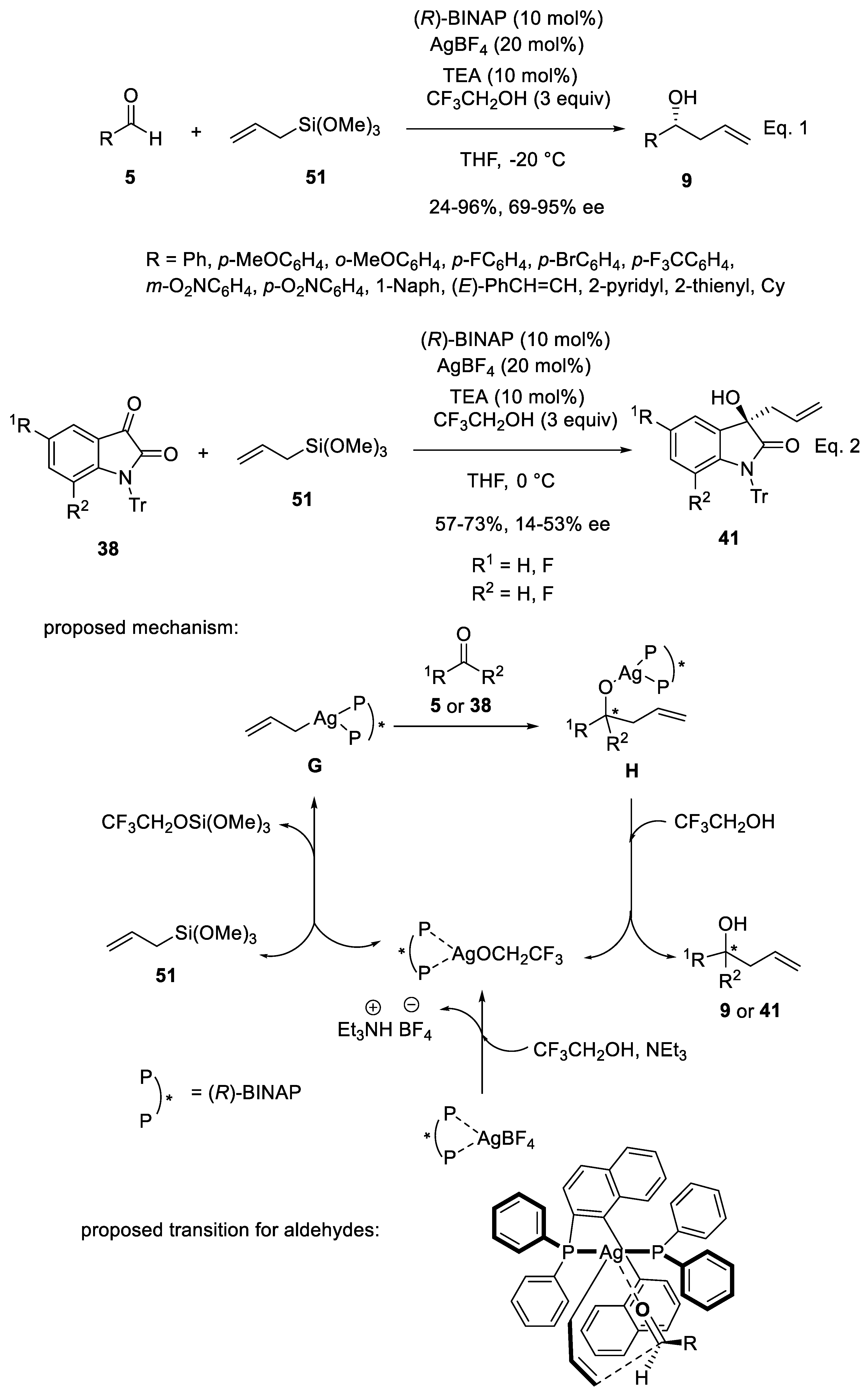 3.2. Silver Catalysts in Enantioselective Sakurai Reactions of Aldehydes and Isatins
