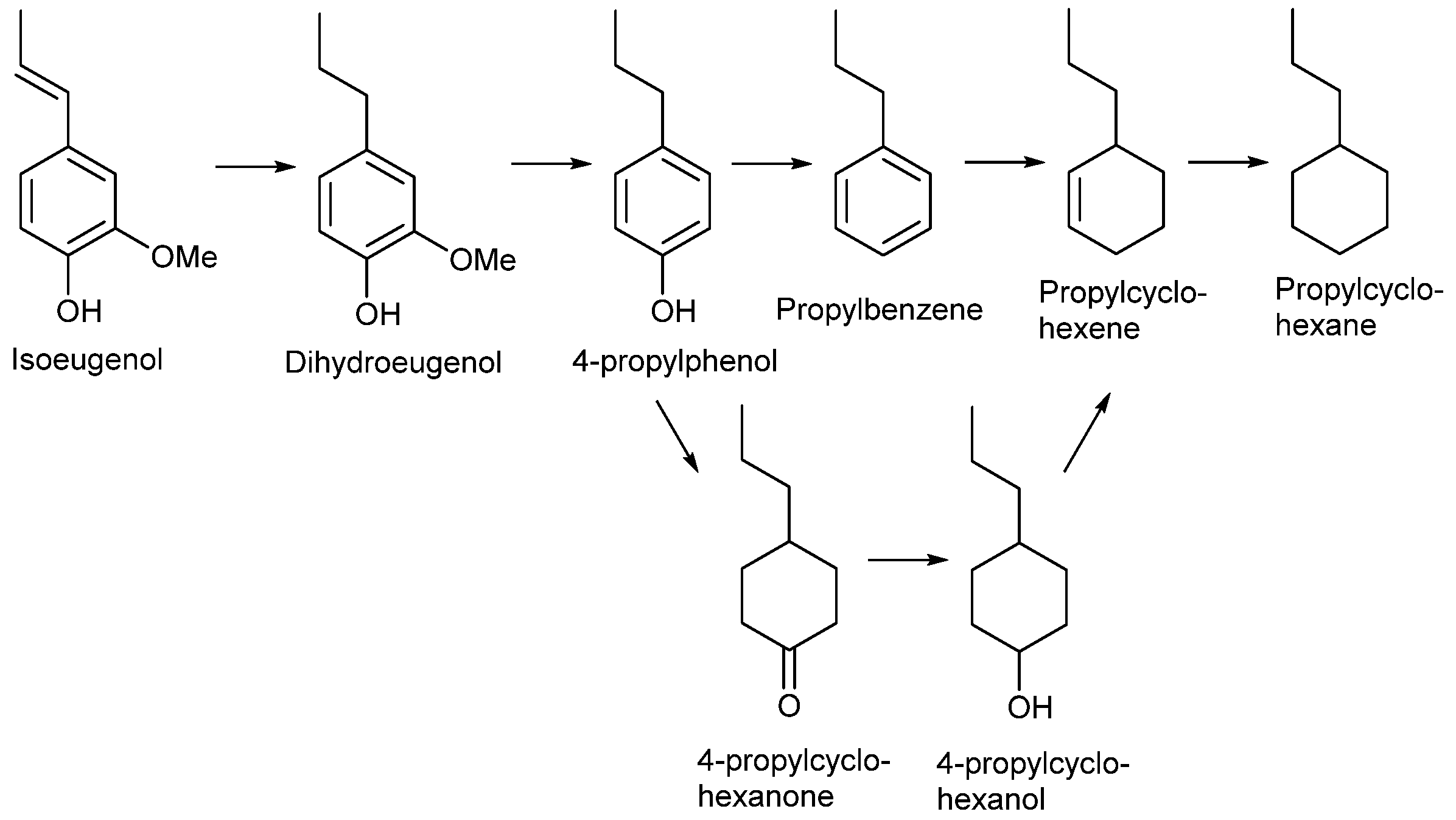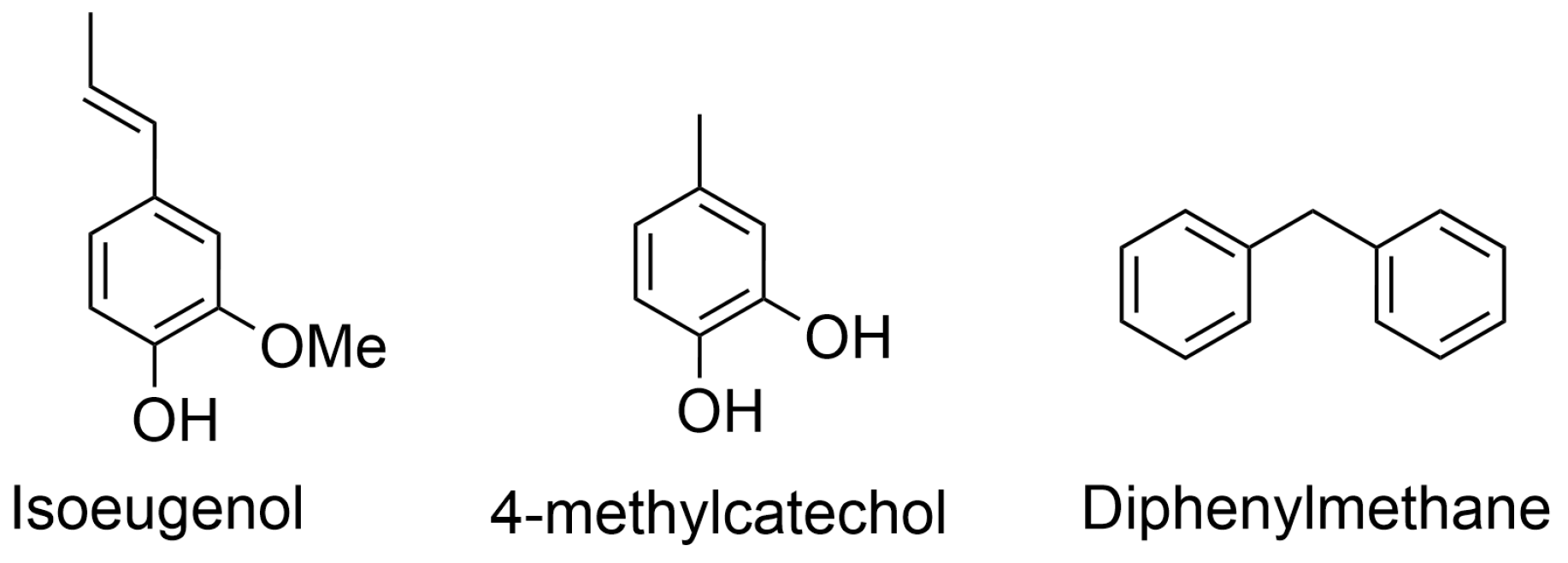 - Tieuli, S.; Mäki-Arvela, P.; Peurla, M.; Eränen, K.; Wärnå, J.; Cruciani, G.; Menegazzo, F.; Murzin, D.Y.; Signoretto, M. Hydrodeoxygenation of isoeugenol over Ni-SBA-15: Kinetics and modelling. Appl. Catal. A Gen. 2019, 580, 1–10. [Google Scholar] [CrossRef]
