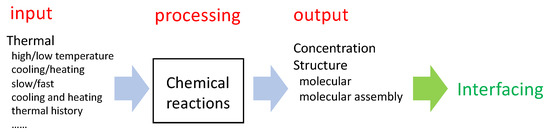 Processing in thermal input/concentration output systems is a phenomenon of molecular assembly involving huge numbers of molecules, which is different from those of a single molecule. Therefore, interfacing with other input/output systems needs to involve large differences in concentrations. When the difference is relatively small, employment of selective receptor and allosteric catalysts can be considered in the removal of noises due to minor products.