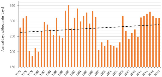 Annual days without rain between 1974 and 2020 (Source: prepared by the authors based on data from ANA).