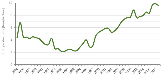 Rural productivity (ton/ha) data between 1974 and 2019 (Source: prepared by the authors based on data from IBGE).