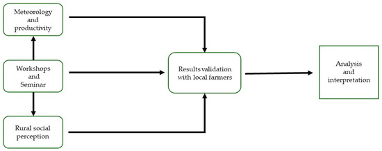 This study presents two typologies of data: quantitative historical data on the meteorological and agricultural production of rain, temperature, and rural productivity, and qualitative data on social perceptions from surveys collected by the authors. The proposal is not to compare these data but to understand the relationships between these two sets of parameters for the context in this region [29].