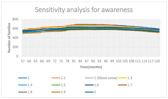 Certain social initiatives were instrumental in creating awareness among the family agents. Our model measures the contributions of community organisations towards creating awareness in the community based on the initiatives that the CBOs engage in over time. The result of the sensitivity test is shown in Figure 9.