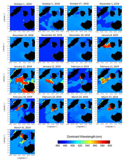Dominant wavelength map around Anak Krakatau from 1 October 2018 to 31 March 2019.