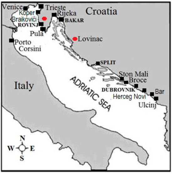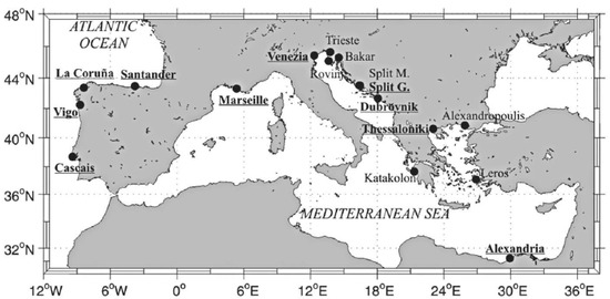 Reference tide gauges on the eastern Adriatic Sea coast (Adapted with permission from Ref. [4]).