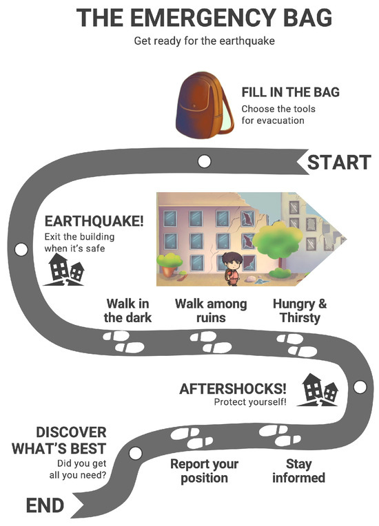 The game draws inspiration from the Treme–Treme [20,32,33] game and the “What should I do and what should I take with me in the case of an earthquake?” educational activity [29].