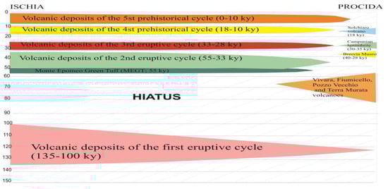 - Aiello, G.; Caccavale, M. Quaternary Evolution of Ischia: A Review of Volcanology and Geology. Appl. Sci. 2023, 13, 3554. [Google Scholar] [CrossRef]