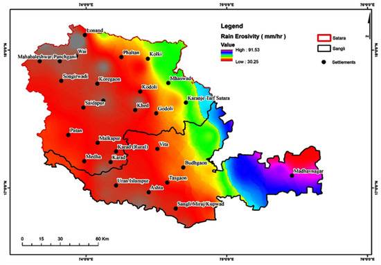 Rain erosivity map of the study area.