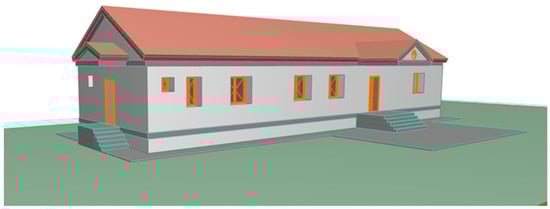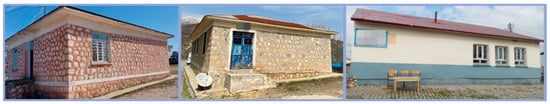 School buildings of different typologies are shown in Figure 12. Variations in the number of classrooms, the wall material used, and the roof shape can be considered as variables seen in such buildings.