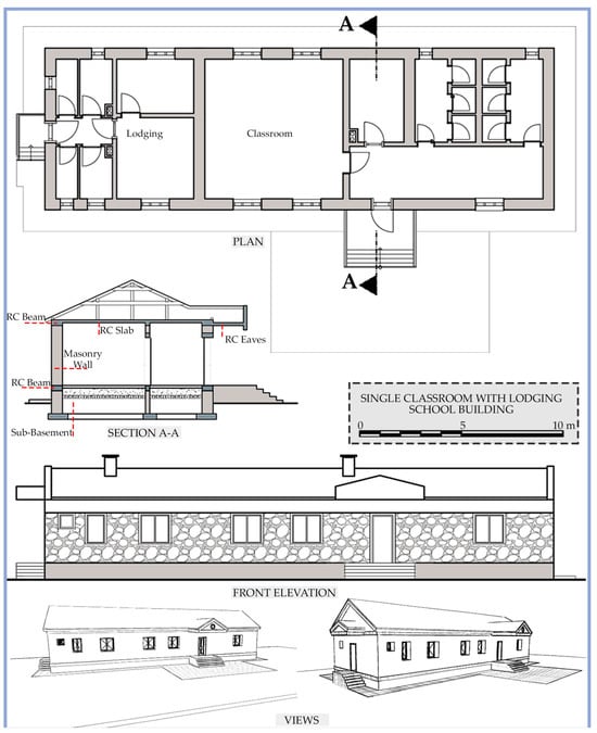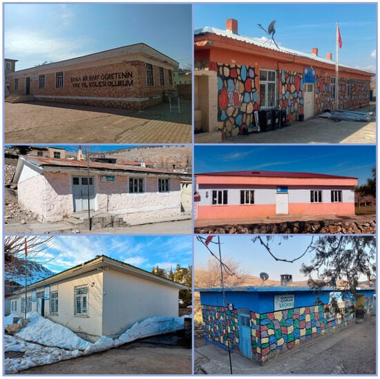 Single-story masonry school buildings with various numbers of classrooms were commonly built in the rural regions of Kahramanmaraş and Adıyaman, which were among the provinces most affected by the disaster. Examples of commonly constructed school buildings are shown in Figure 10.