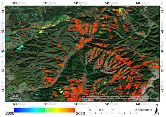 - Pasquarella, V.J.; Arévalo, P.; Bratley, K.H.; Bullock, E.L.; Gorelick, N.; Yang, Z.; Kennedy, R.E. Demystifying LandTrendr and CCDC temporal segmentation. Int. J. Appl. Earth Obs. Geoinf. 2022, 110, 102806. [Google Scholar] [CrossRef]