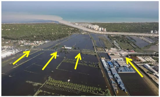 The image of the event in the area of study in September 2019 shows the complete flooding of all of the adjacent land (