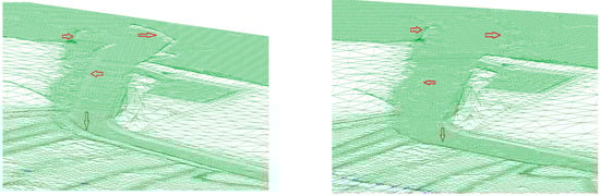 The elevation of the N-332 road could vary in height. However, the simulation considers 7 m, with a lower board at 5 m and with a free space of between 0.5–1 m and 5 m, in order to allow for the access of maintenance and cleaning machinery, which can measure between three and five metres tall. In order to resolve the problem of the N-332, it is sufficient to elevate the road enough to leave a free space where the waters can flow without being hindered. One debatable point is that the distance between the pilasters when using real pillars could differ from the simulated free spaces between the pillars in this study, which could partially modify the results. This study establishes a uniform distance of 15 m. However, it is possible that there are regulations that establish a shorter or greater distance, which could affect the free space where the flood waters can circulate. Nevertheless, the result obtained is fairly positive, as it allows the water to drain easily when this free space between the pillars is simulated.