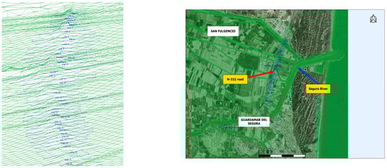 3.2. Proposal of a Solution to the Existing Problem of the Barrier Effect of the N-332 and the Hydraulic Infrastructures in the Final Section of the River Segura