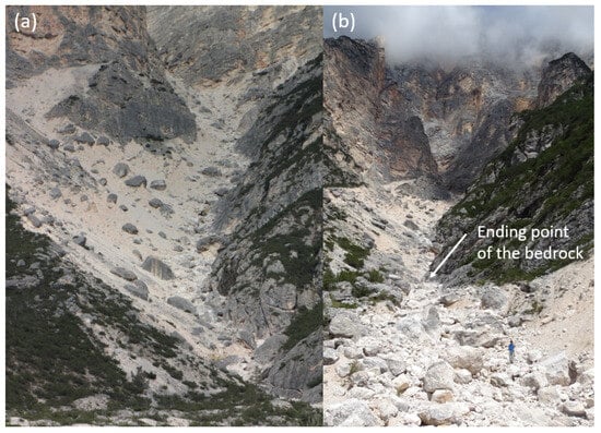 - Berti, M.; Genevois, R.; LaHusen, H.; Simoni, A.; Tecca, P.R. Field observations of a debris flow event in the Dolomites. Geomorphology 1999, 29, 265–274. [Google Scholar] [CrossRef]