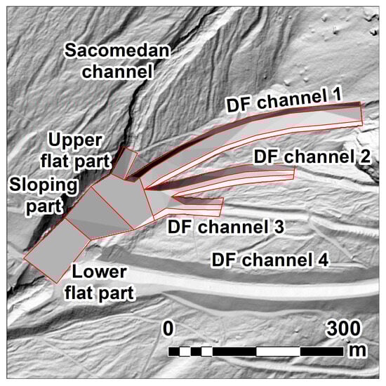 - Schiavo, M.; Gregoretti, C.; Boreggio, M.; Barbini, M.; Bernard, M. Probabilistic identification of debris-flow pathways in mountain fans within a stochastic framework. J. Geophys. Res. Earth Surf. 2024, 129, e2024JF007946. [Google Scholar] [CrossRef]