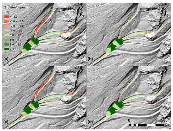 - Gregoretti, C.; Stancanelli, M.L.; Bernard, M.; Boreggio, M.; Degetto, M.; Lanzoni, S. Relevance of erosion processes when modelling in-channel gravel debris flows for efficient hazard assessment. J. Hydrol. 2019, 569, 575–591. [Google Scholar] [CrossRef]