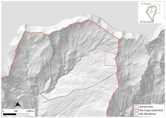 Location of the survey area inside the Rio Merdovine sub-catchment.