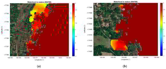 Results of high-resolution model. (a) Northern part of the study area; (b) middle part of the study area.